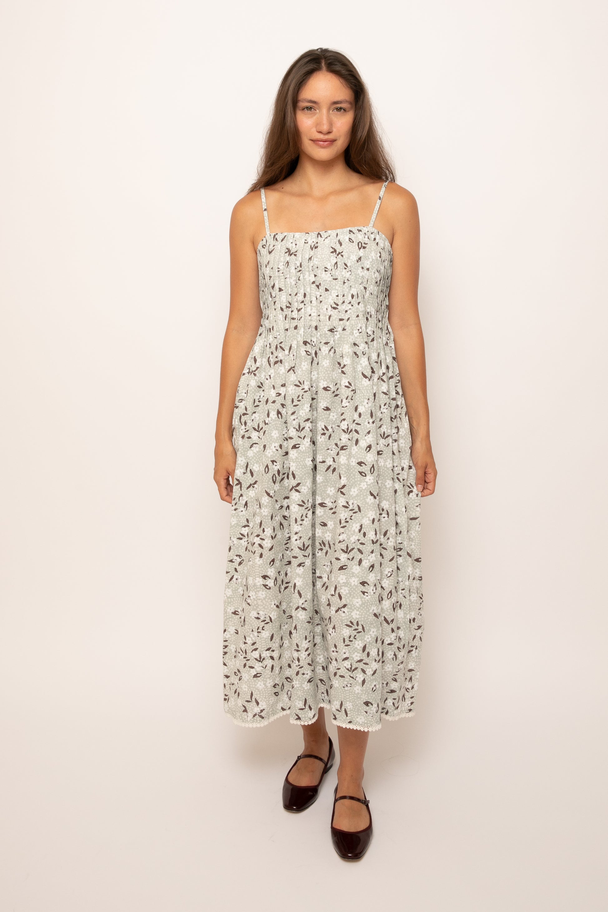 Our Bianca slip dress are made with soft cotton fabric, in the block printed pattern, smocking and pleats in the dress makes the perfect details.