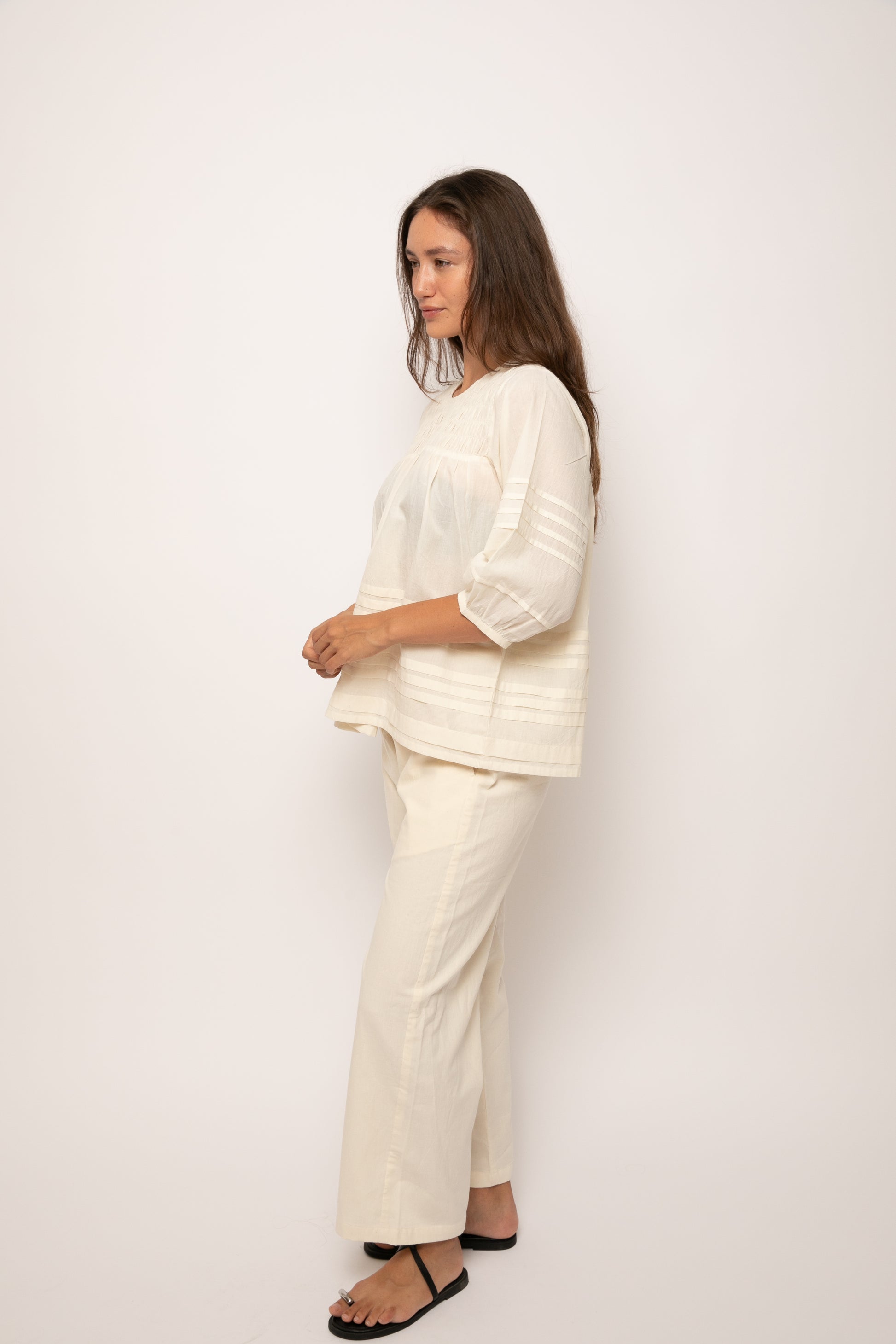 Beautiful hand loomed cotton fabric with pleated details with vintage feel and touch.